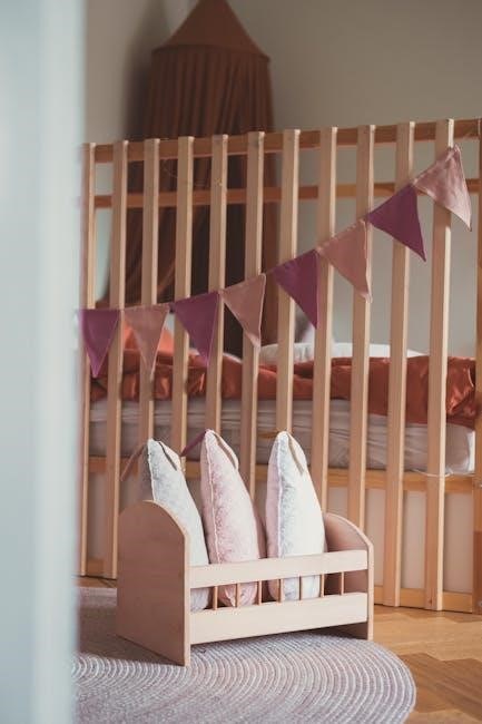 Follow the diagrams closely‚ paying attention to the orientation of each piece. Once the frame is complete‚ attach any decorative elements or safety features as indicated. Double-check all connections for tightness and stability. The manual provides clear illustrations for each step‚ simplifying the process. Prioritize safety and accuracy throughout assembly for a secure and lasting crib.
